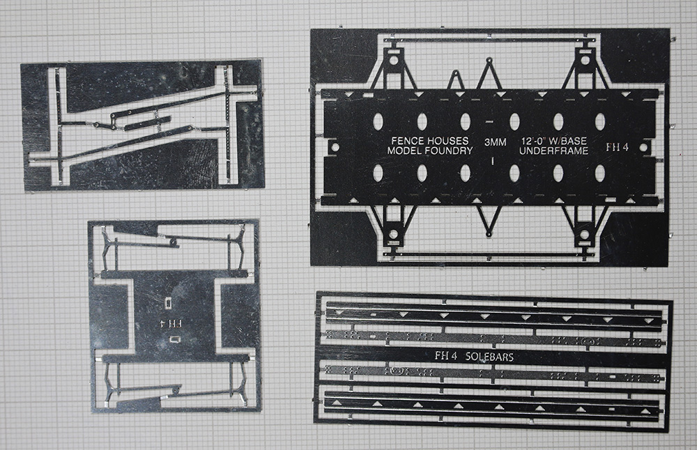 Fencehouses Etched Nickel silver BR 12′ 0″ wheelbase steel wagon chassis including channel solebars