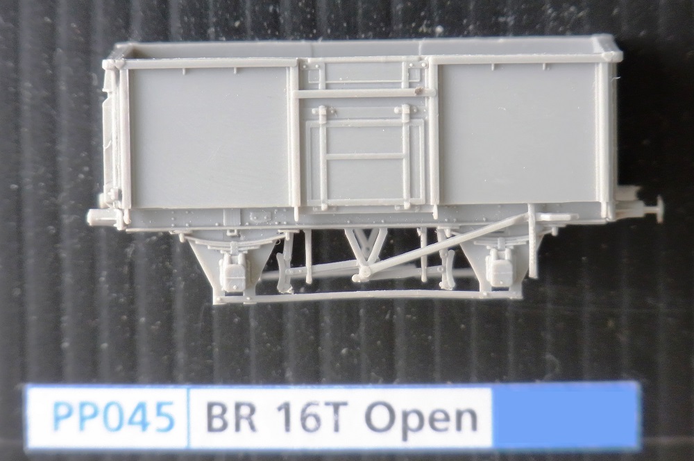 BR 16′ 6″ 16 ton Welded steel open with PP030 9′ under frame and PP014 buffers. Mineral diagrams 1/104 (MOT), 1/106 (LMS diagram 2134), 1/108, 1/111, 1/114 and 1/117. The PP030 u/f has the wrong W irons, the PP0064 Parkside underframe has the correct ones.