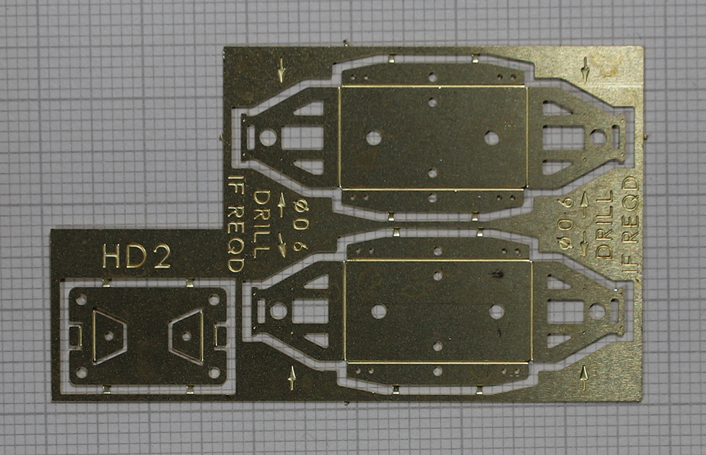 HD002 – Etched Brass BR Open Frame ‘W’ irons with hole for shunt hawser hook, 2 Wagon Set, etched