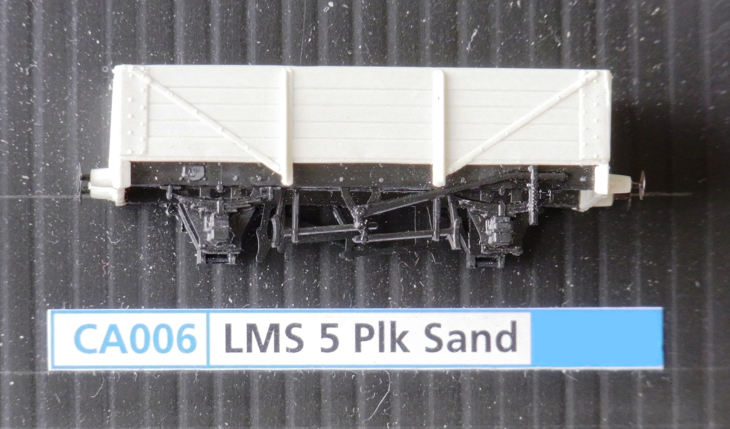 LMS 17′ 6″ 5 plank open sand wagon with no doors, diagram 1888 with PP031 10′ 0″ wood under frame and PP014 buffers.