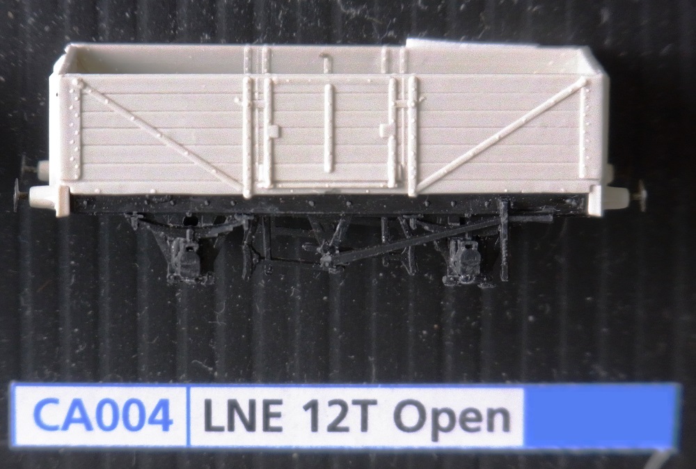 LNER 17′ 6″ 6 plank 12T open wagon with sack doors, with PP031 10′ 0″ under frame and PP014 buffers. Needs bits off PP029 to complete (Door bangers for all variants, headstocks for steel under frame, 10′ asymmetric brake bits for vacuum fitted variant. The same body can be used with a 9′ under fame in which case the fitted variant needs bits off the LNER van PP035/36).