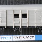 SR PMV/CCT 4 wheel Passenger Luggage Van (diagram 3103 32′ PLV) or Covered Carriage Truck (diagram 3101 32′ 4″ Van U). Supplied with both types of ends, even planks and PP013 4 mm buffers. 21′ wheelbase 32′ trussed steel chassis PP062 and PP039 roof.