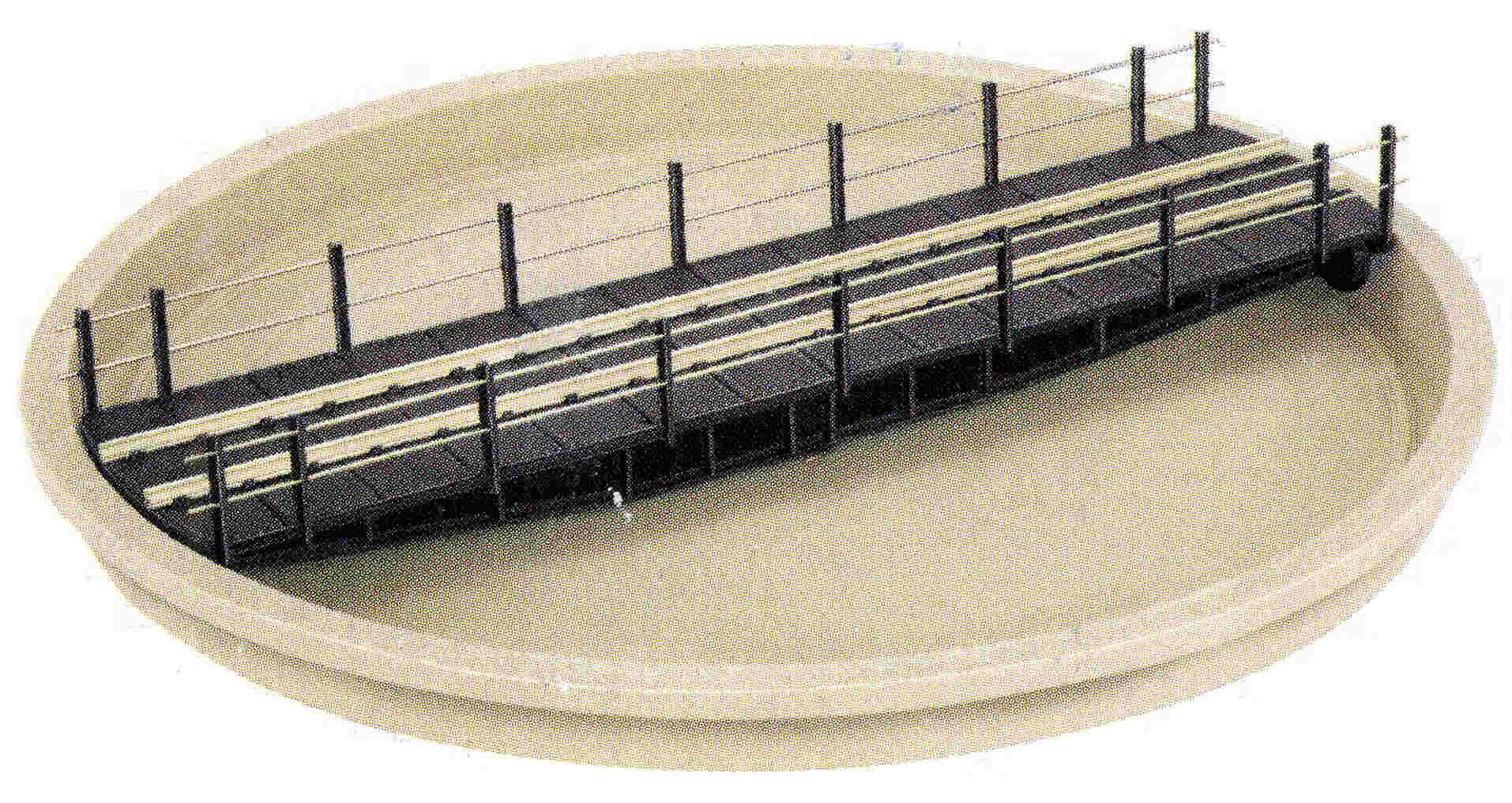 50’ [150 mm] Turntable (can be assembled with open pit or ‘snow’ deck) Contents of box – Plastic mouldings: 1 well, 1 deck, 2 side frames, 3 bearing components, 2 deck plates and ancillary parts. – Polythene bag containing: 2 lengths of rail, 2 well contacts, 1 length of wire, 2 top section contacts, 2 plunger contacts, 2 springs, 4 handrails. Requires a 155 mm diameter hole in the baseboard.